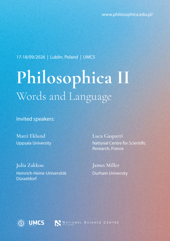 Philosophica is an analytic philosophy conference series hosted by the Institute of Philosophy at Maria Curie-Skłodowska University (UMCS). The theme of this edition of the conference is words and language, engaging with philosophical work addressing the nature of expressions, meaning, and natural language more broadly construed.